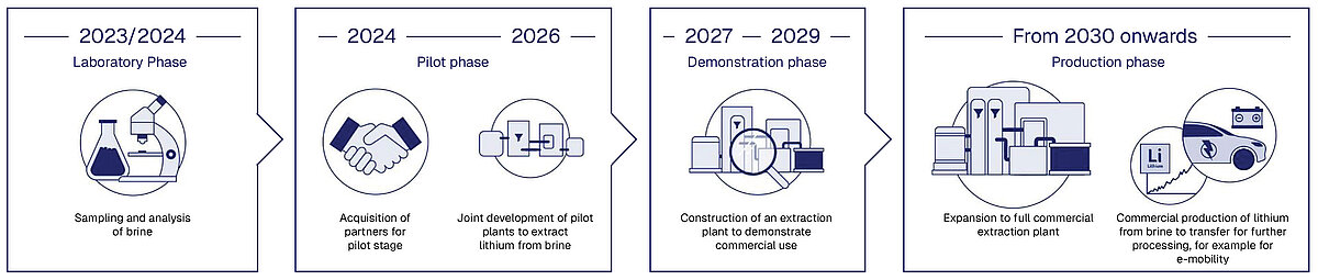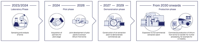 Decades of experience in natural gas production are now forming the basis for the energy supply of tomorrow: various technologies for extracting lithium from brine will be tested as part of a pilot phase until mid-2026. The aim is to gain reliable insights for further project development and potential commercial production. This will be followed by a demonstration phase in which the use of an extraction plant will be trialled as the next step towards commercial production.
